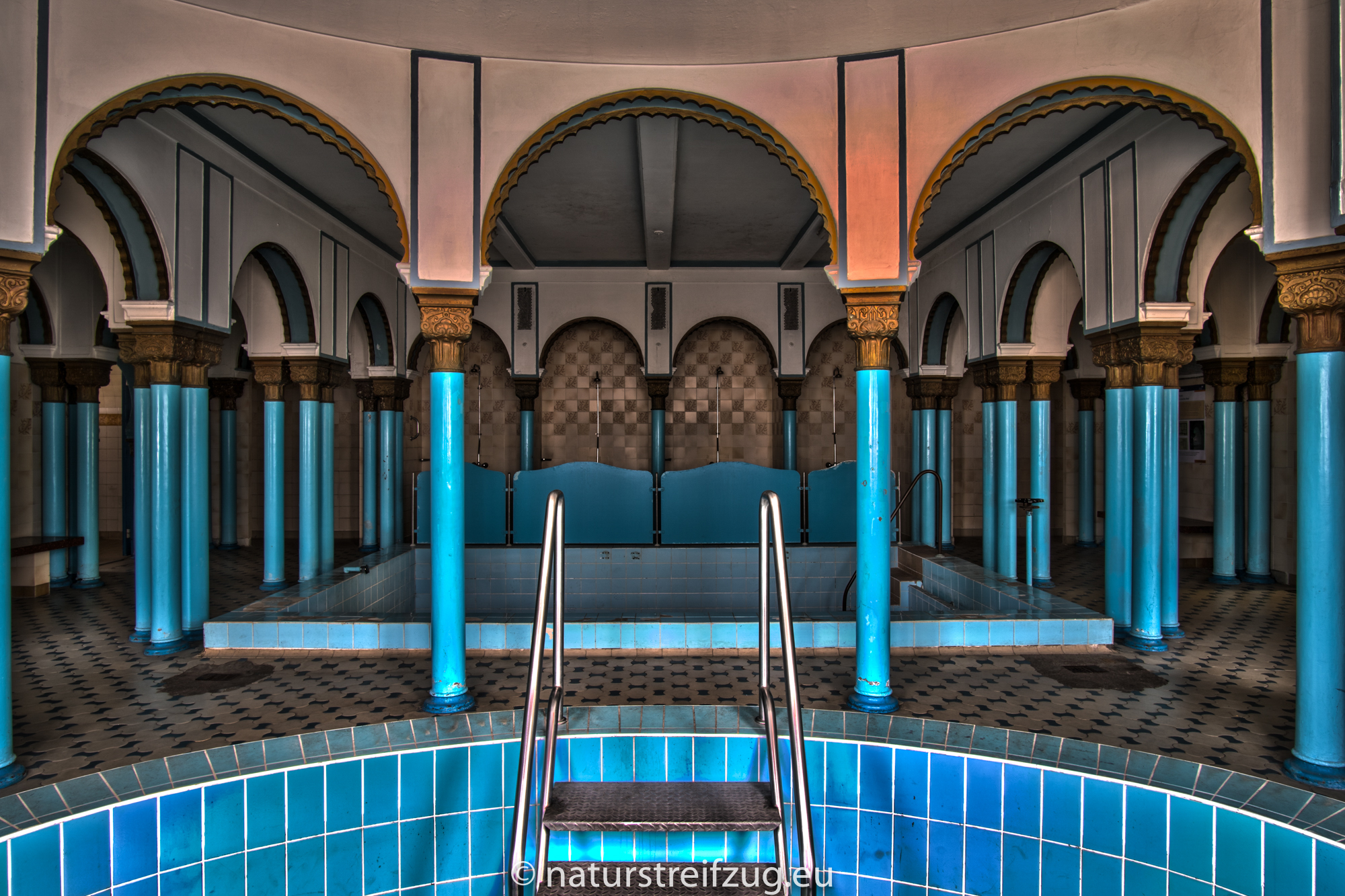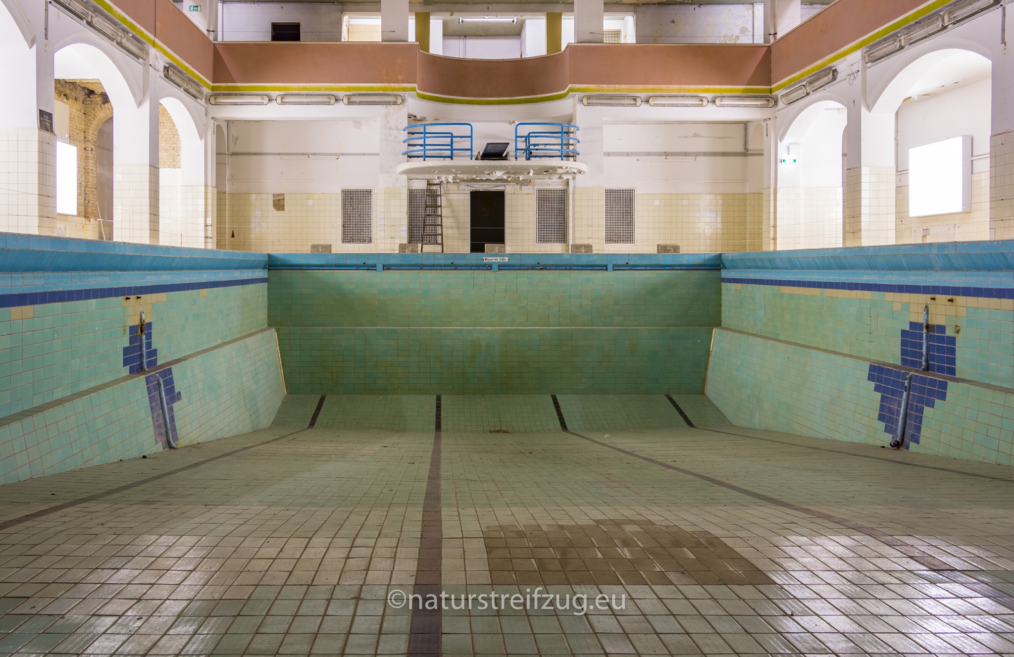 Kurz bevor die ehemalige Städtische Badeanstalt verkauft und saniert werden sollte und deshalb zum Zutritt in der Form nicht mehr zur Verfügung stehen würde, hatten wir im Februar 2017 die letzte Gelegenheit bekommen, dort photographieren zu können. Wir konnten uns dabei gut vorstellen, wie es früher wohl gewesen war: