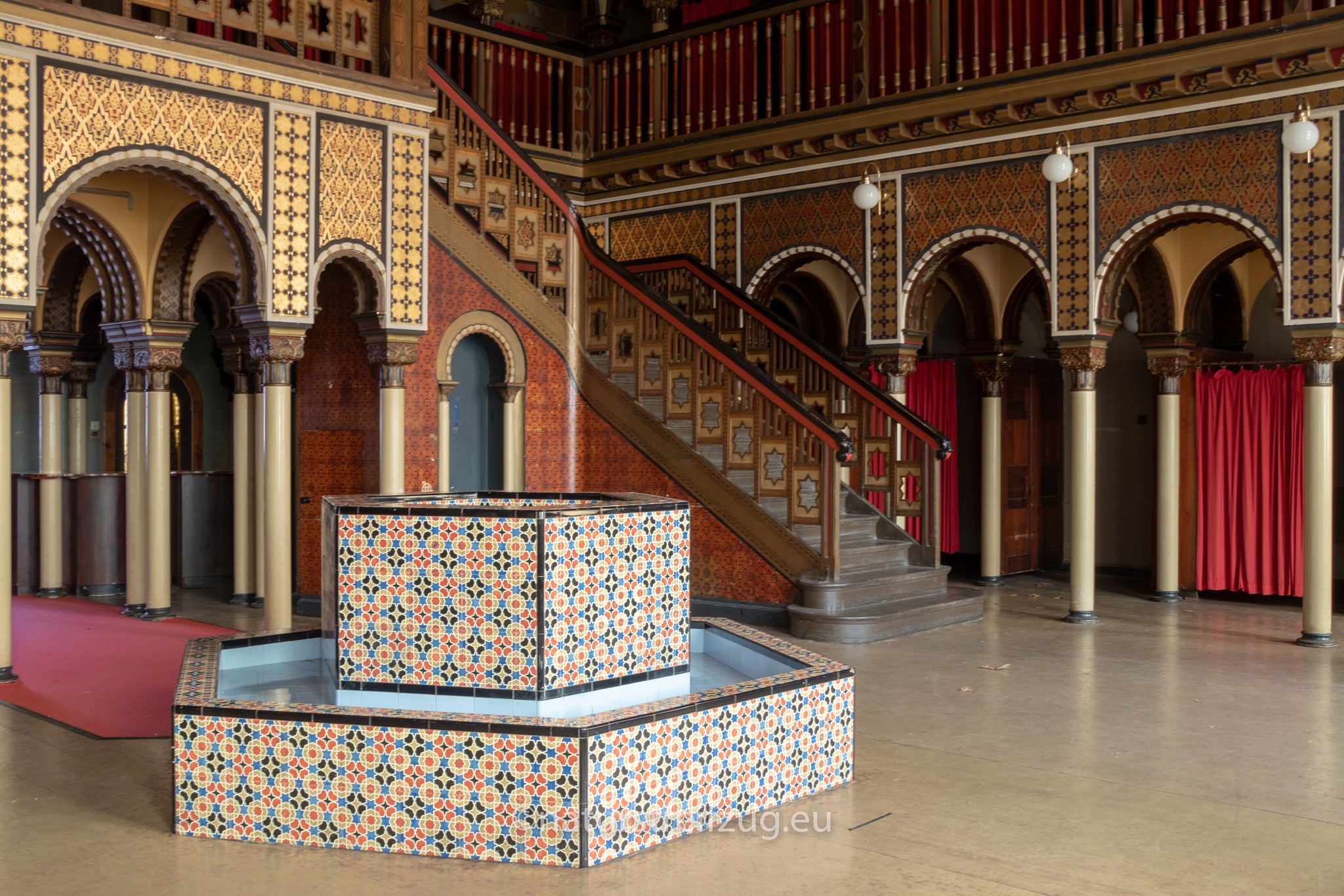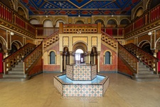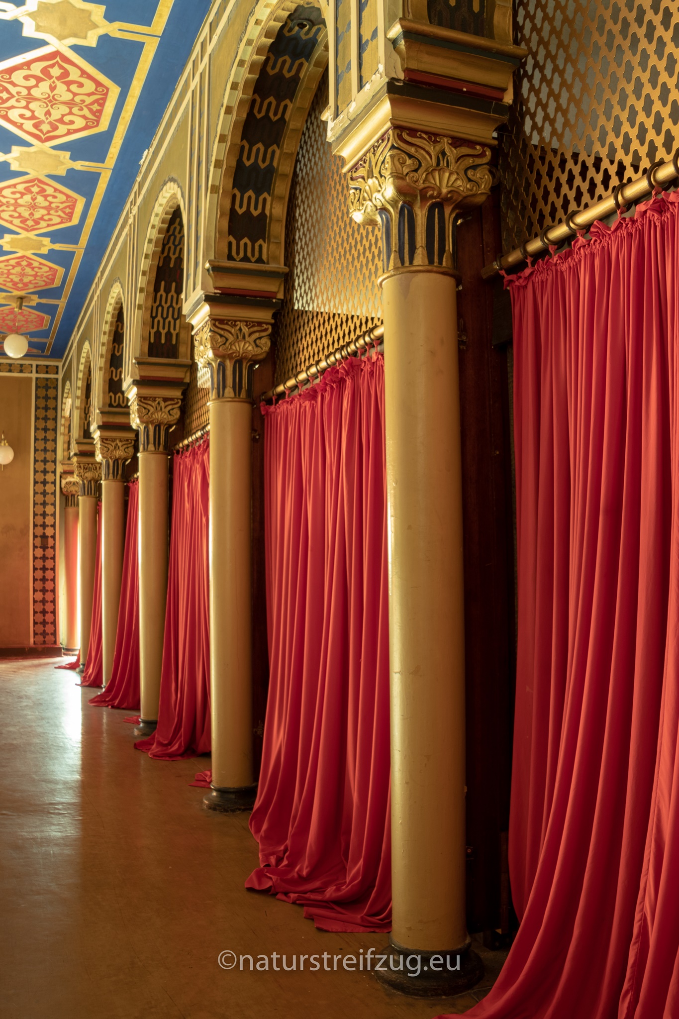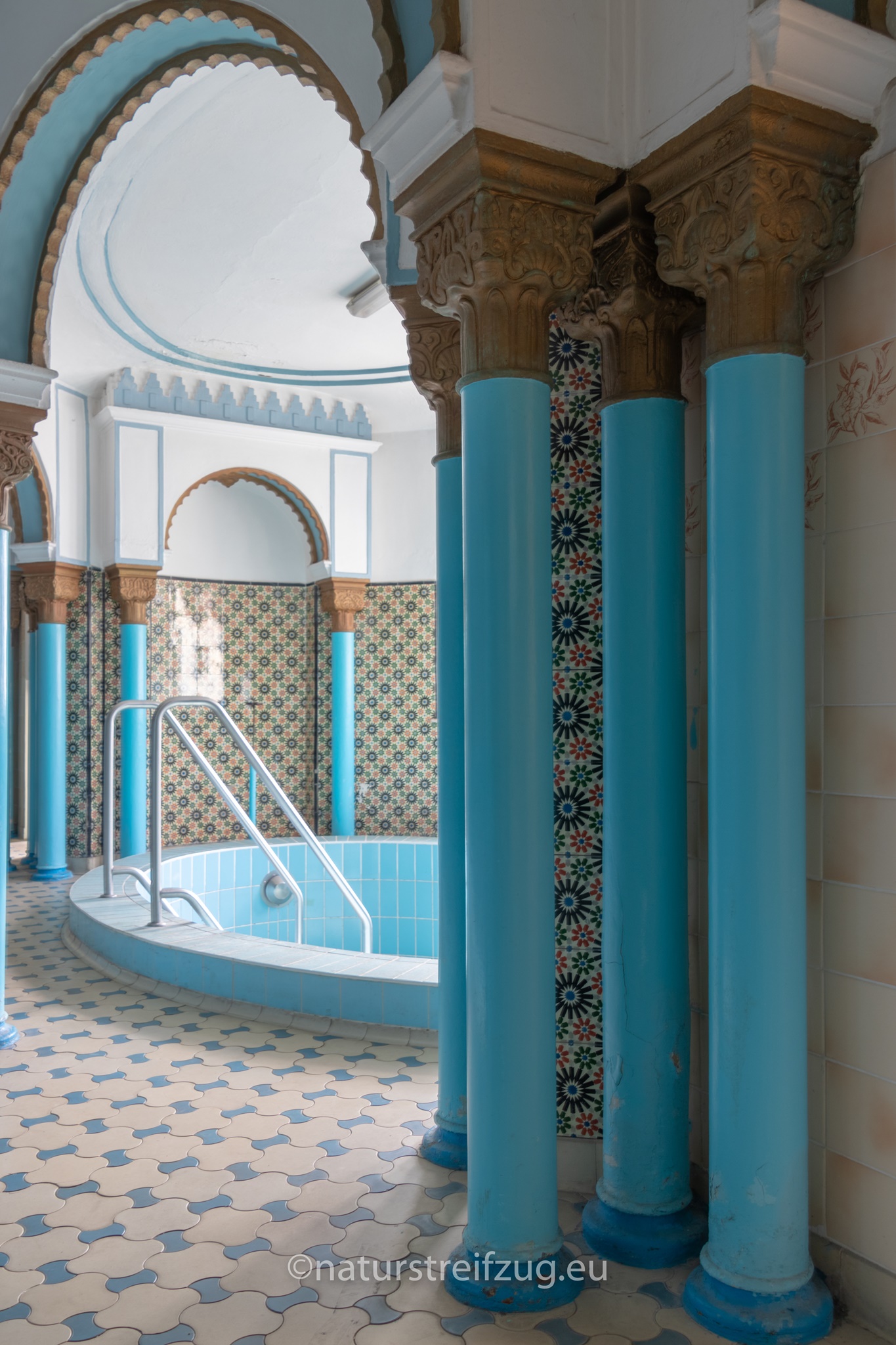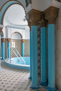 Ganz im Gegensatz dazu steht das alte Stadtbad von Leipzig mit prachtvoller orientalischer Damensauna im maurischen Stil. Man kann sich auch hier sofort lebhaft vorstellen, wie Freundinnen oder Gruppen von Frauen hier und da saßen, zusammen lachten und ins Gespräch vertieft sich Geschichten (von 1001 Nacht) erzählt haben könnten.....