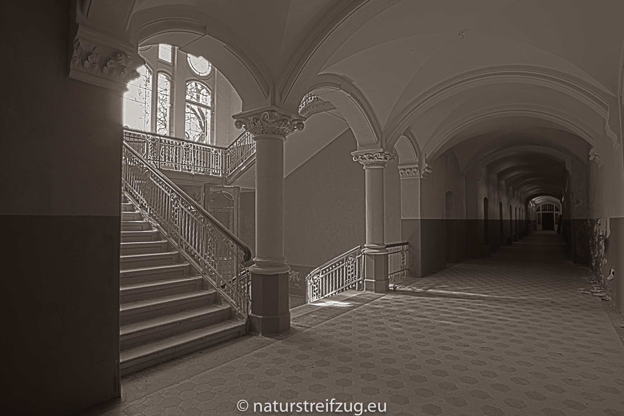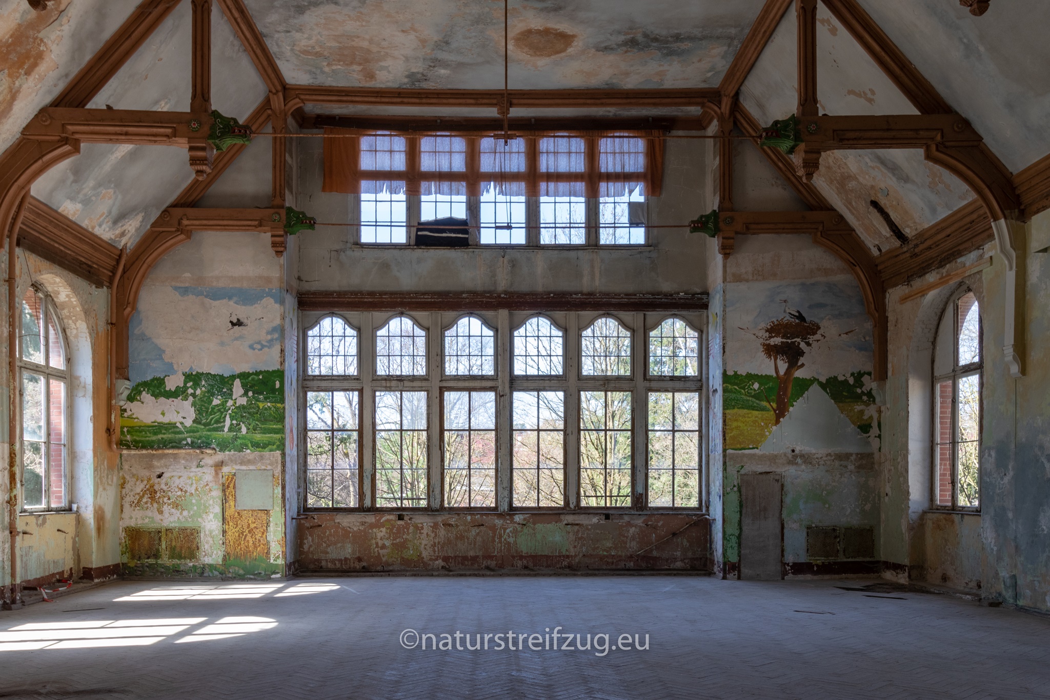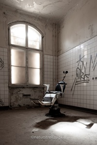 Leider sind die interessanten Beelitz Heilstätten (durch Vandalismus) so zerstört und verfallen, dass von ihrer ursprünglichen Bestimmung nicht mehr viel erkennbar ist. Wäre mehr erhalten und auch noch dieser oder jene Gegenstand vorhanden, könnte man sich wirklich ein gutes Bild davon machen, was es bedeutet hat, in früheren Zeiten in einem Sanatorium behandelt zu werden. Eine Ahnung von früher einzufangen war deshalb im April 2018 ausgesprochen schwierig.