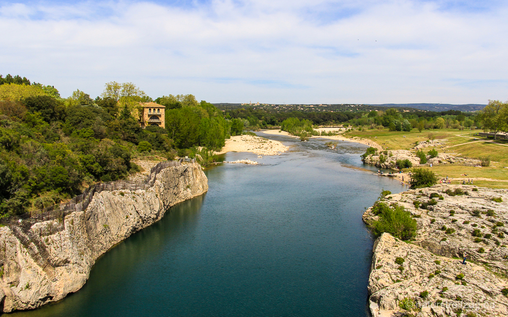 Am Gard kann man schöne Wanderungen unternehmen. Eine davon sind wir im April 2016 von Collias in Richtung La Baume gelaufen. An einer Stelle hat man einen spektakulären Ausblick auf den Fluss mit Ruinen einer alten Mühle und von Wehranlagen auf der anderen Seite.