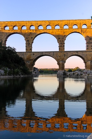 Dieses imposante Meisterwerk der römischen Baukunst muss man gesehen haben, wenn man im Département Gard unterwegs ist. Am Ufer des Gard zu sitzen und den Sonnenuntergang abzuwarten, ist ein Erlebnis.