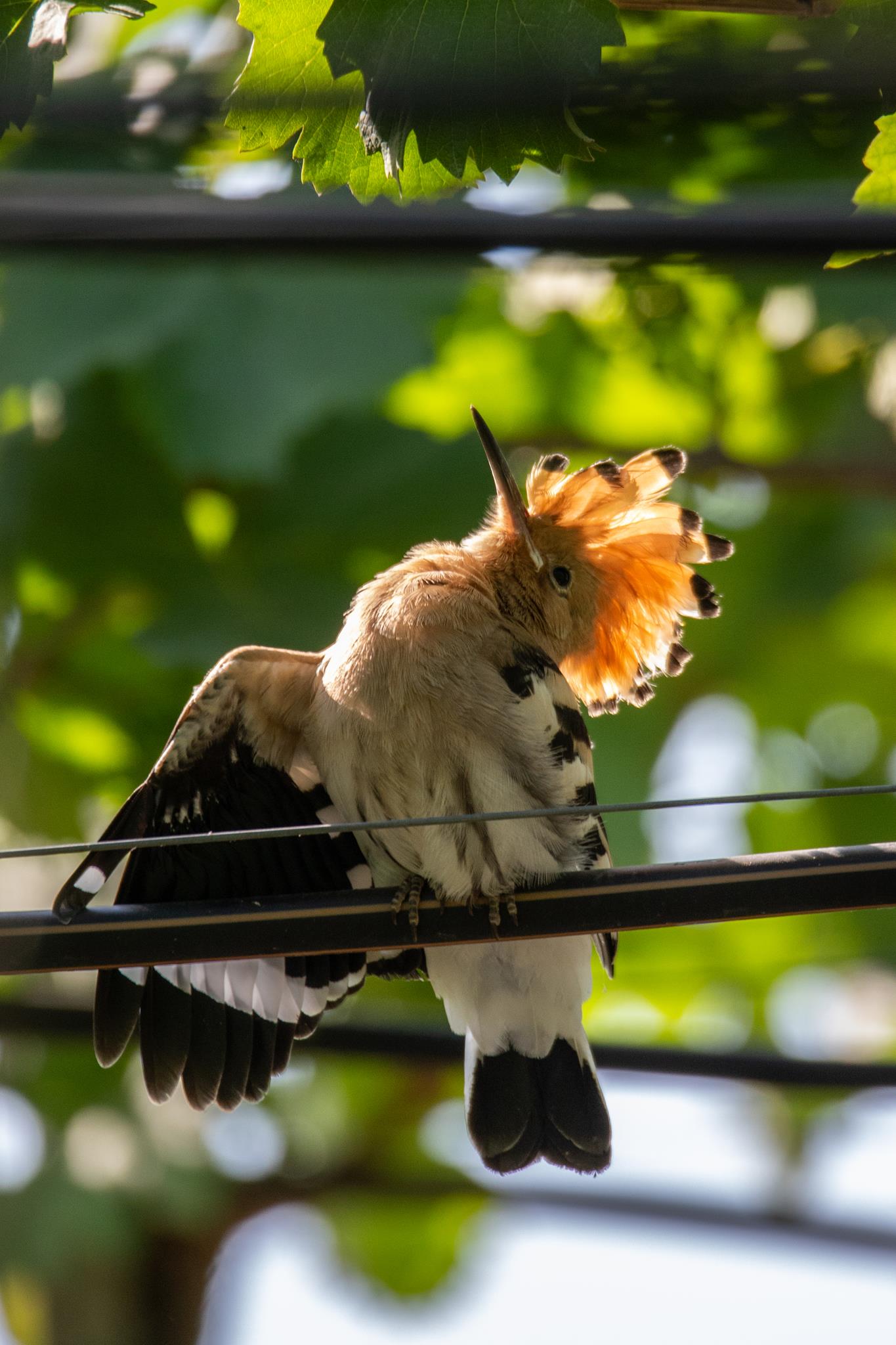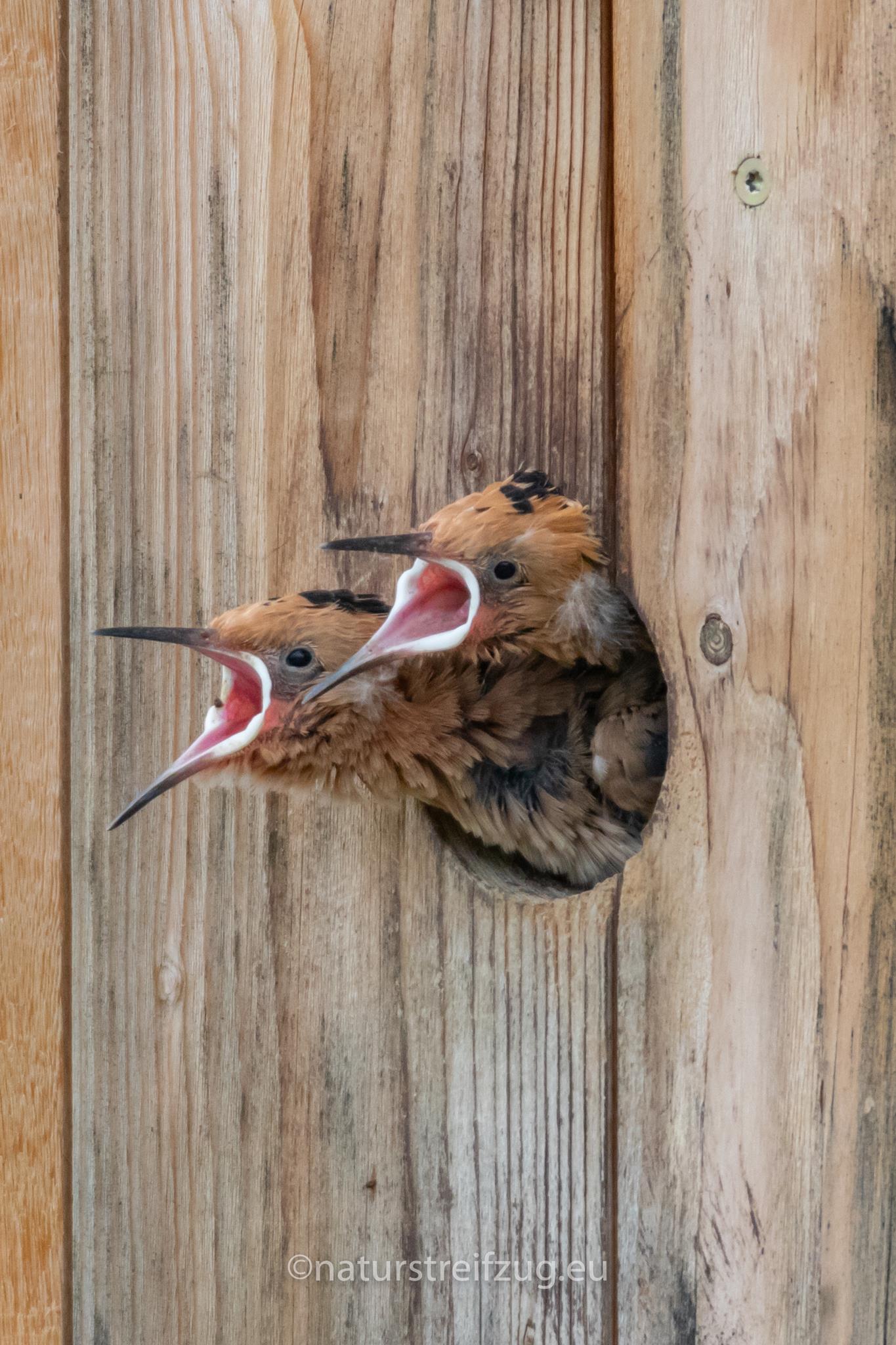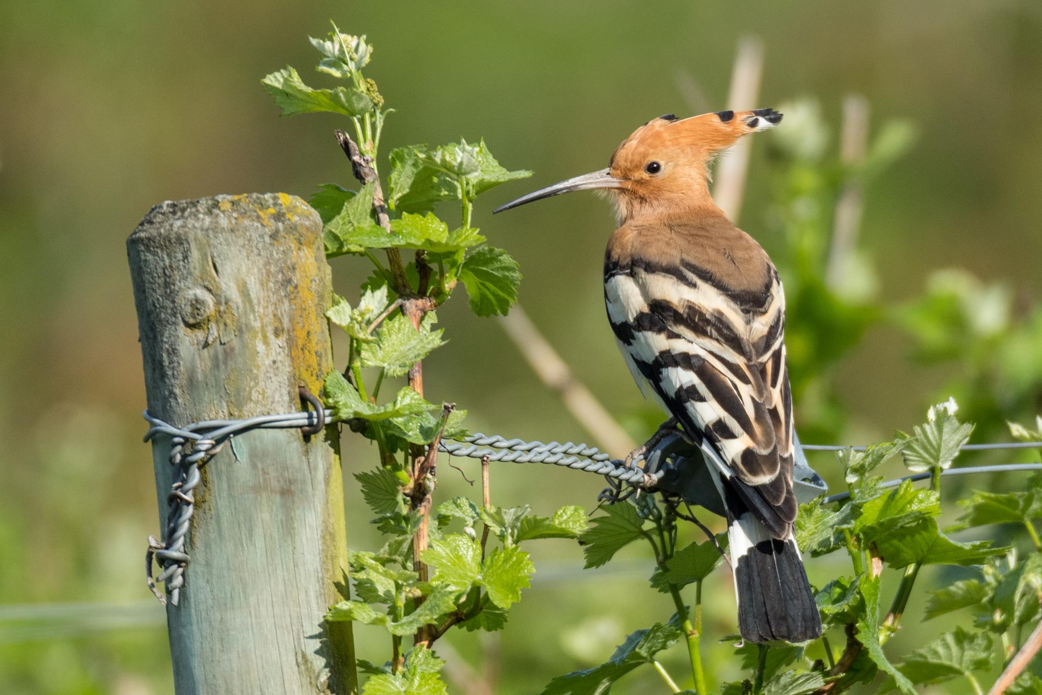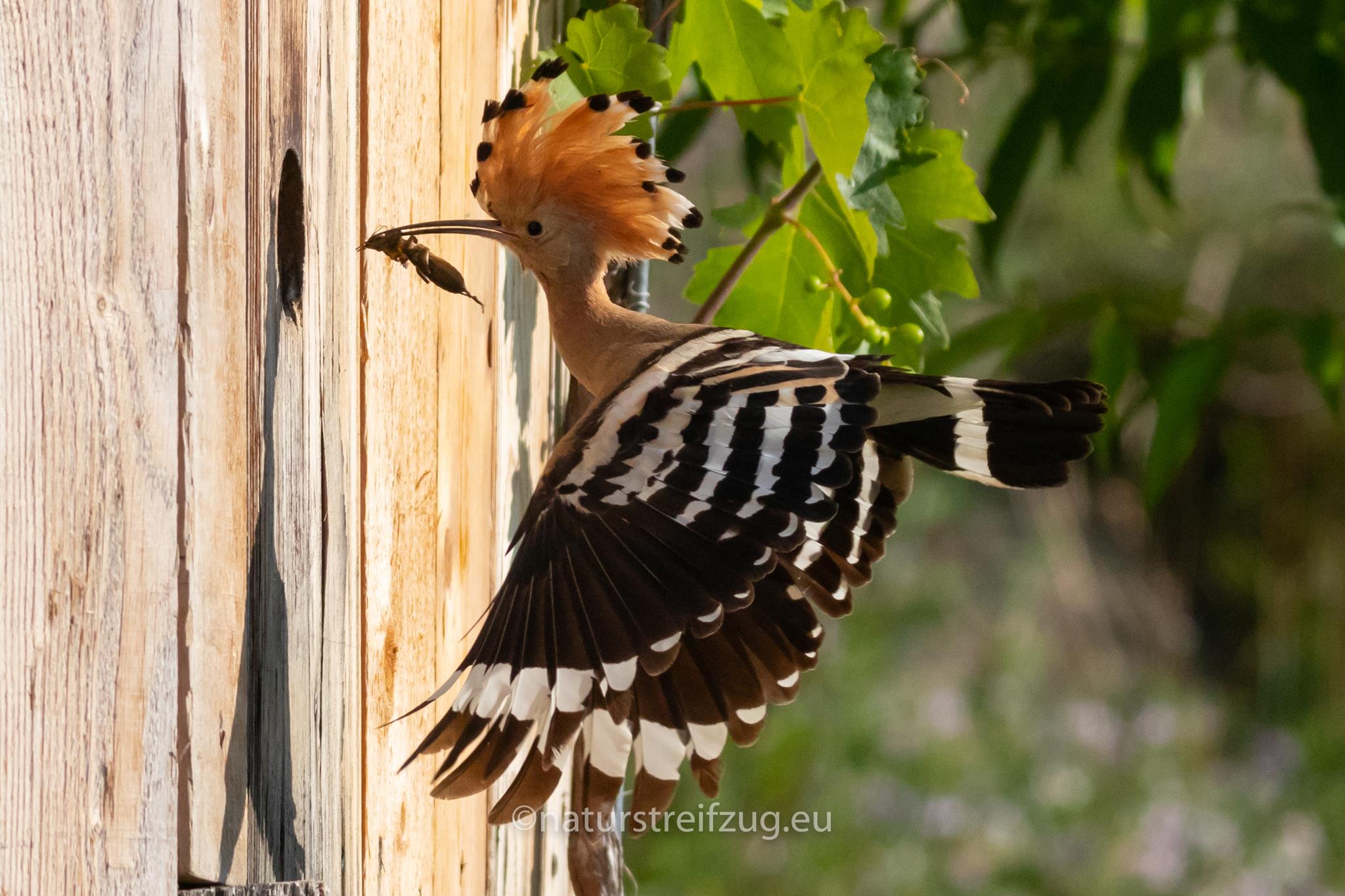 Also hieß es von April bis Juni 2018, nachdem das Wetter endlich besser wurde, mit Fernglas herumlaufen und die Gegend unter die Lupe zu nehmen. Schon bald hörten wir huphuphup und sichteten einen Wiedehopf, der sich in der Nähe einer versteckten Rebhütte herumtrieb, die bei näherer Inspizierung auch ein passendes Loch aufwies. Dort saß ein zweiter Vogel. Offenbar hatten wir Glück....