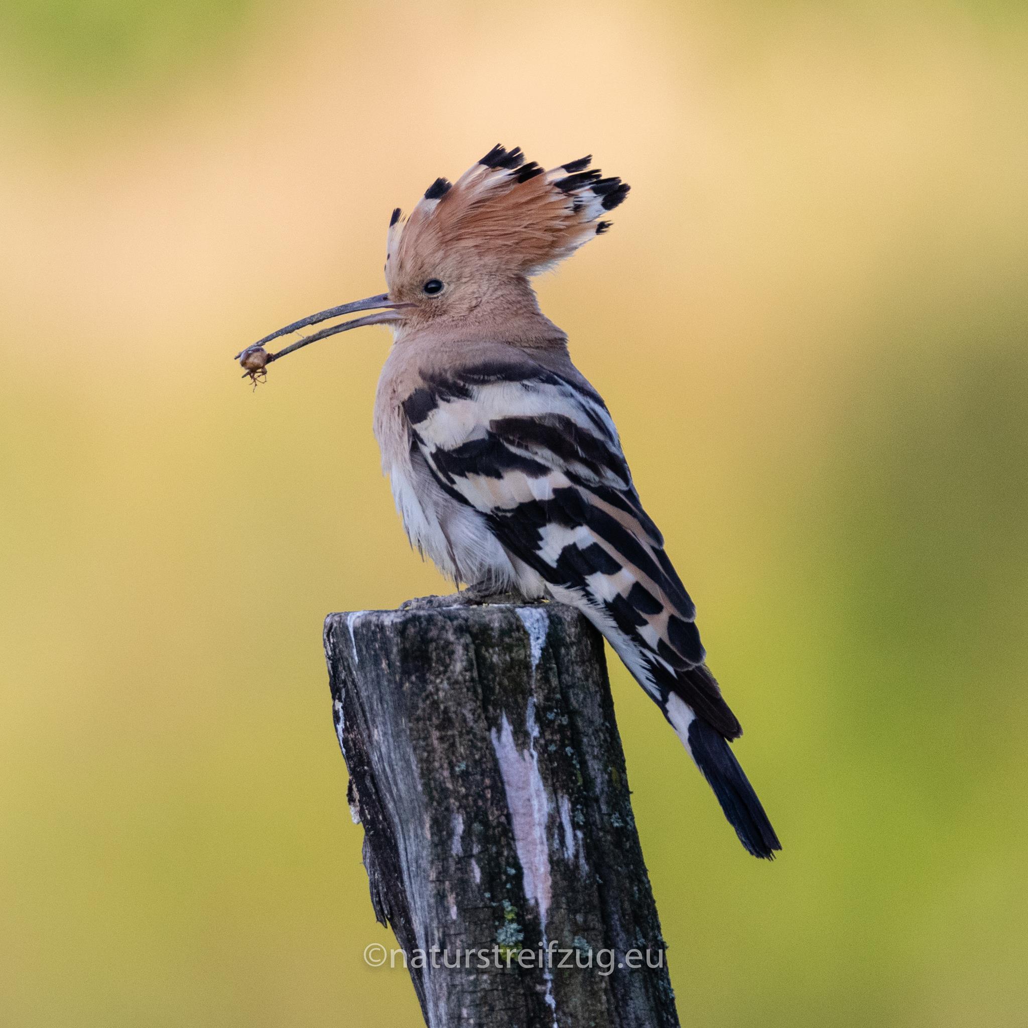 Alle Jahre wieder werden in Vogelphotographie-Foren die schönsten Wiedehopf-Bilder unter anderem aus unserer Region gepostet. Kein Wunder, dass uns das jetzt auch auf den Plan rief, der Sache bzw. dem Wiedehopf einmal nachzugehen. Aber wo anfangen? Die Region ist groß. Da der Vogel gerne in alten Rebhütten nistet, in denen früher die Winzer ihr Werkzeug für die Rebarbeiten unterbrachten, nahmen wir uns ein Weinreben-Areal am Kaiserstuhl vor, in dem solche Rebhütten noch zu finden sind. Die werden leider immer weniger, weil aufgrund der modernen Maschinen weniger gebraucht. Aber erfreulich ist, dass es auch neue, speziell auf den Wiedehopf zugeschnittene Rebhütten mit einem Loch in halber Höhe und Nistkasten dahinter gibt, in der Absicht, den Vogel wieder vermehrt anzusiedeln.