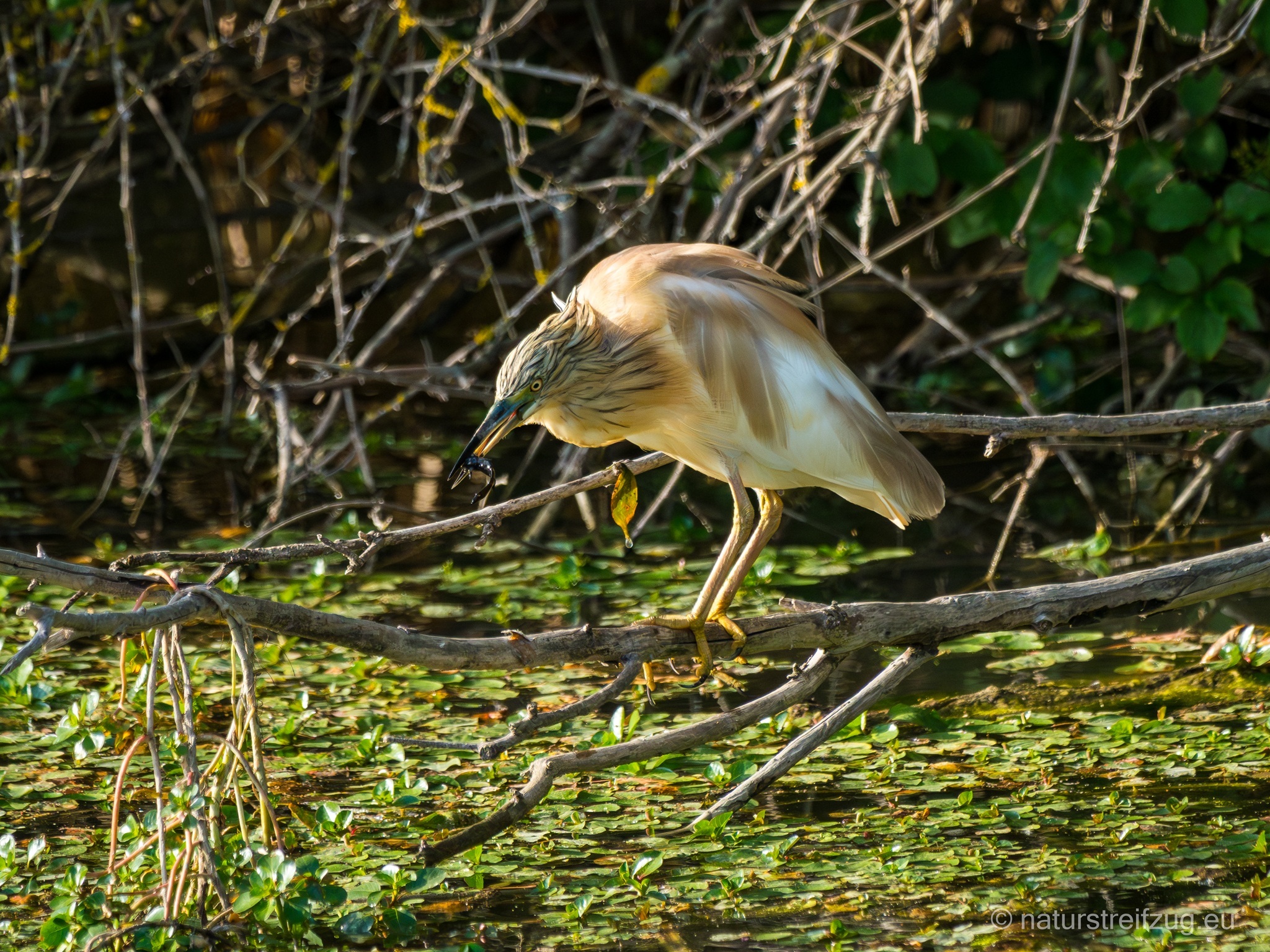 An einem Kanal entdeckten wir das Reich eines Rallenreihers, den wir an mehreren Tagen dort zuverlässig beim Fischfang antreffen konnten.