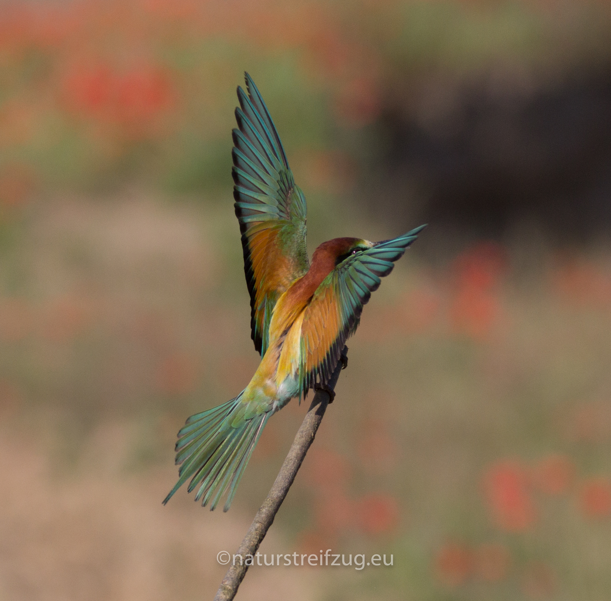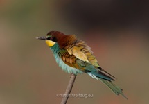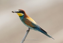 Als wir uns bei den Einheimischen erkundigten, ob ihnen gute Stellen bekannt seien, an denen man Eisvögel beobachten könne, bekamen wir eine Stelle genannt, "an der einem die Eisvögel nur so um die Ohren fliegen würden". Da mussten wir natürlich hin, aber zu unserer Überraschung und auch Freude fanden wir dort keine Eisvögel vor, sondern diese Spezies hier - den Bienenfresser: