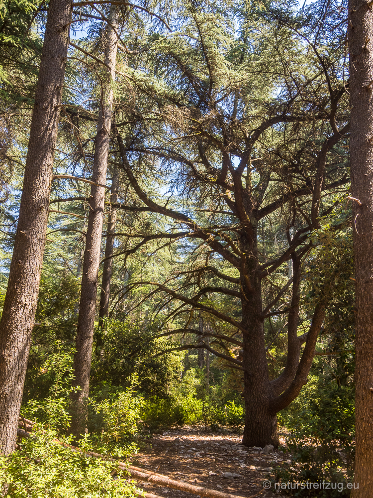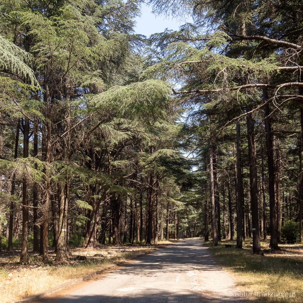 Einer dieser kühleren Orte war der Zedernwald auf dem Gipfel des kleinen Luberon. Hier verbrachten wir den Tag, bis es kühl genug war, um Bonnieux zu besuchen. Er liegt immerhin 700 m hoch. 1861 wurde der Wald mit Zedernsamen aus dem Atlasgebirge in Marokko angelegt.