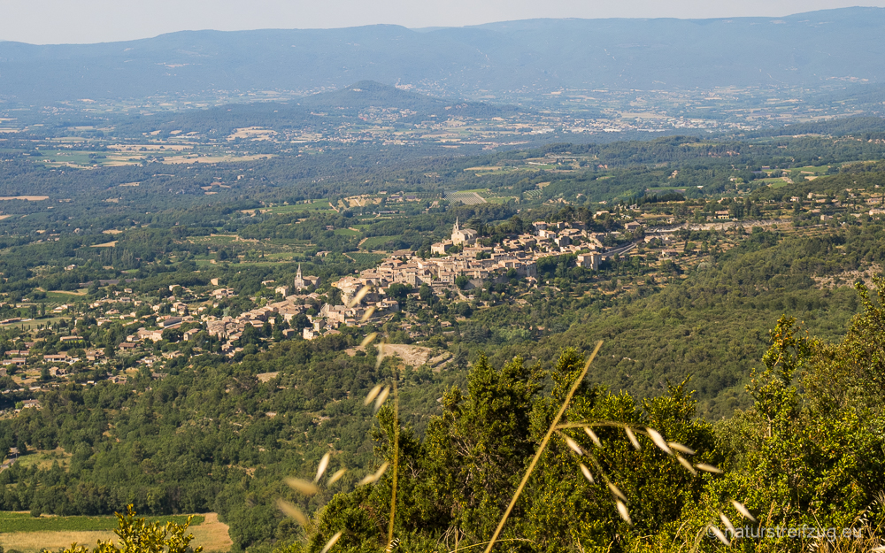 Auf dem Weg dorthin hat man an einer Stelle einen wunderschönen Ausblick auf Bonnieux.