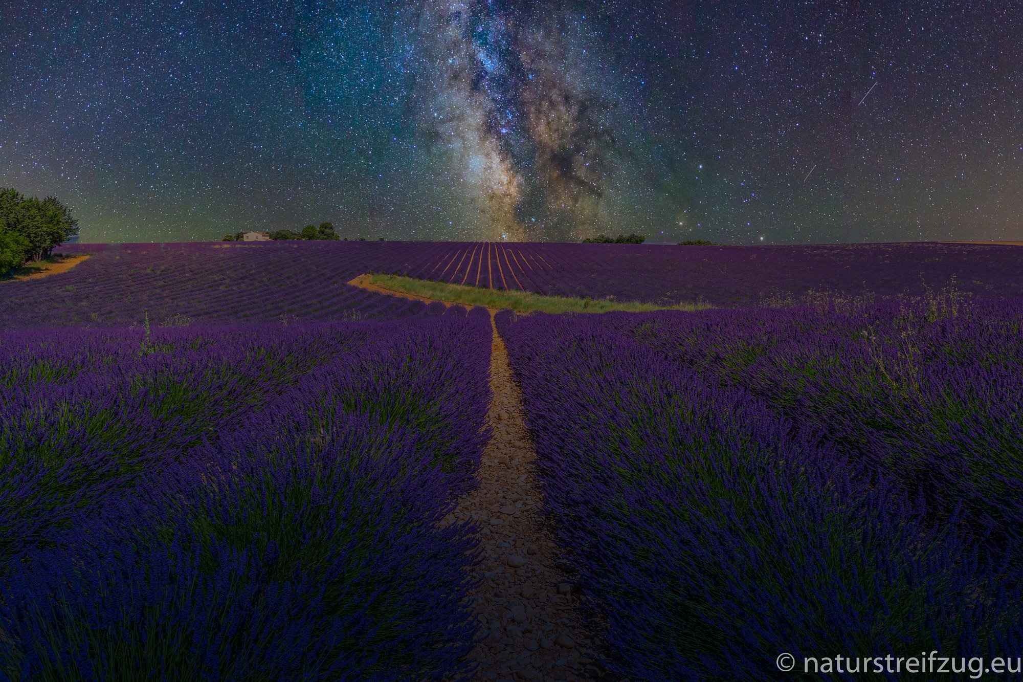 Gerne hätten wir noch eine Nachtaufnahme von der Milchstraße über den Lavendelfeldern gemacht. Leider war keine Neumondsituation, die eine solche Aufnahme möglich gemacht hätte. So hätten wir es gerne gehabt.....;-)