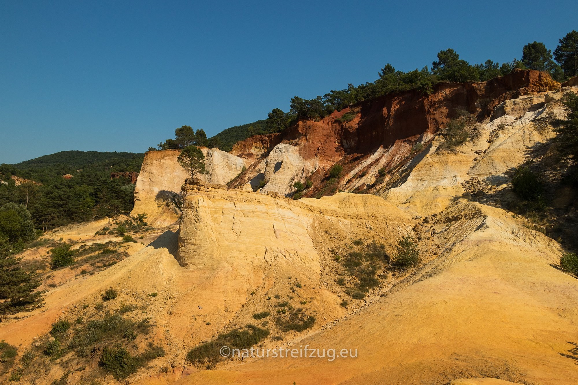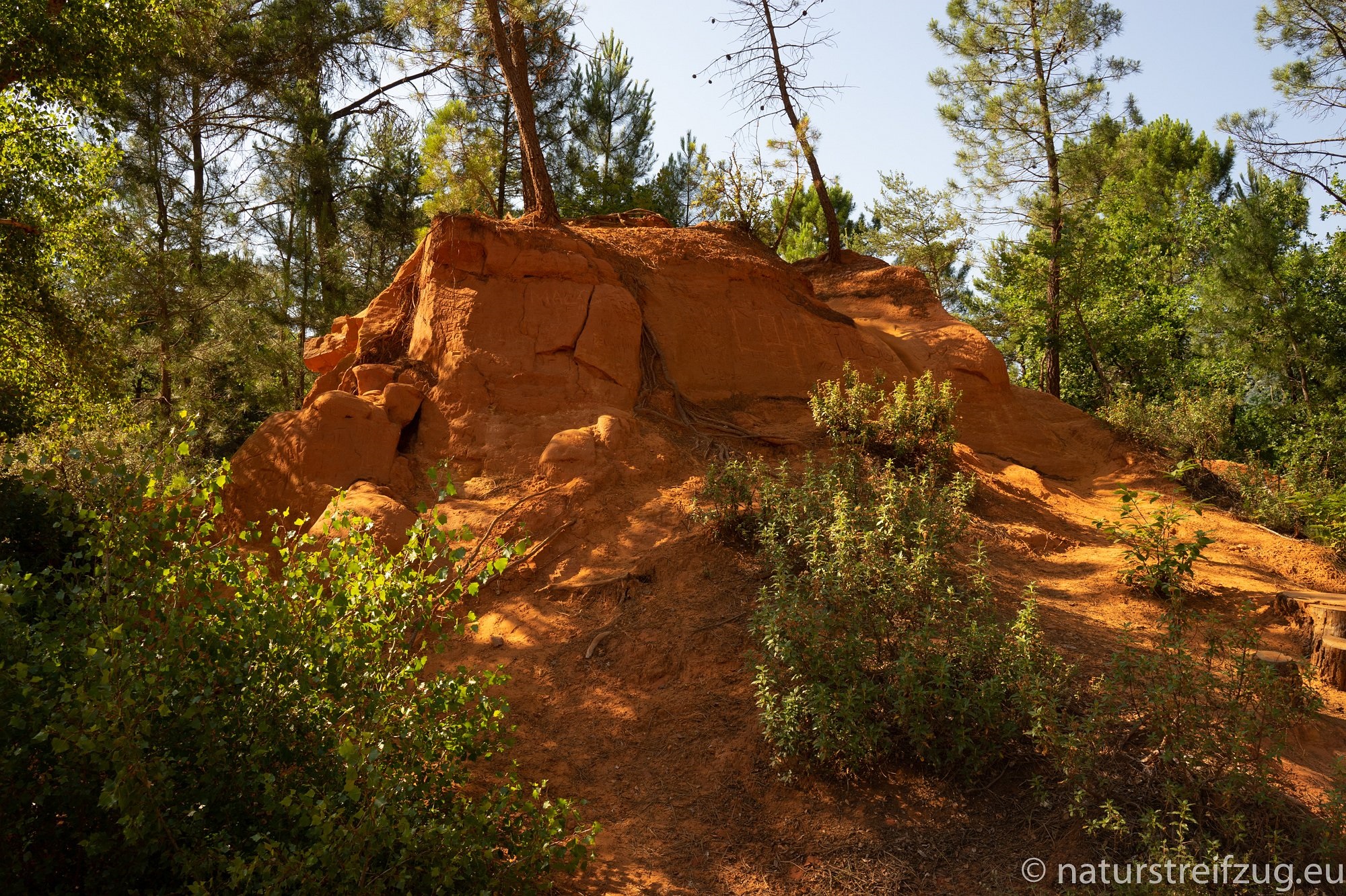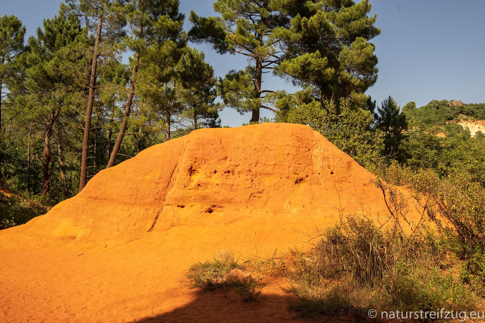 Neben den bekannten Ockersteinbrüchen von Roussillon gibt es noch einen anderen sehenswerten Steinbruch: Le Colorado Provencal bei Rustrel. Schon zur Römerzeit wurde Ocker abgebaut.