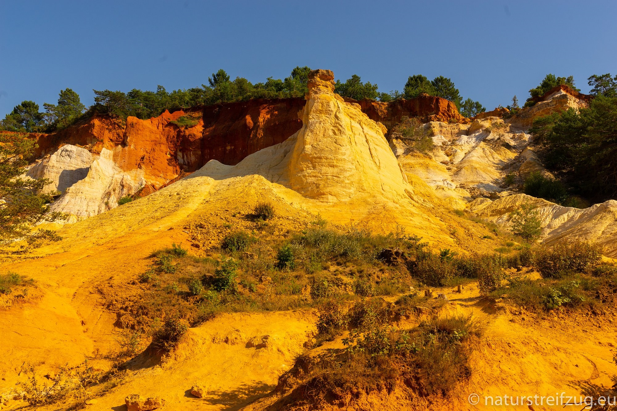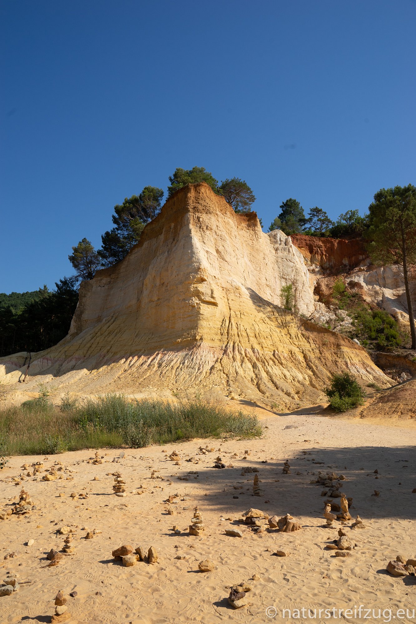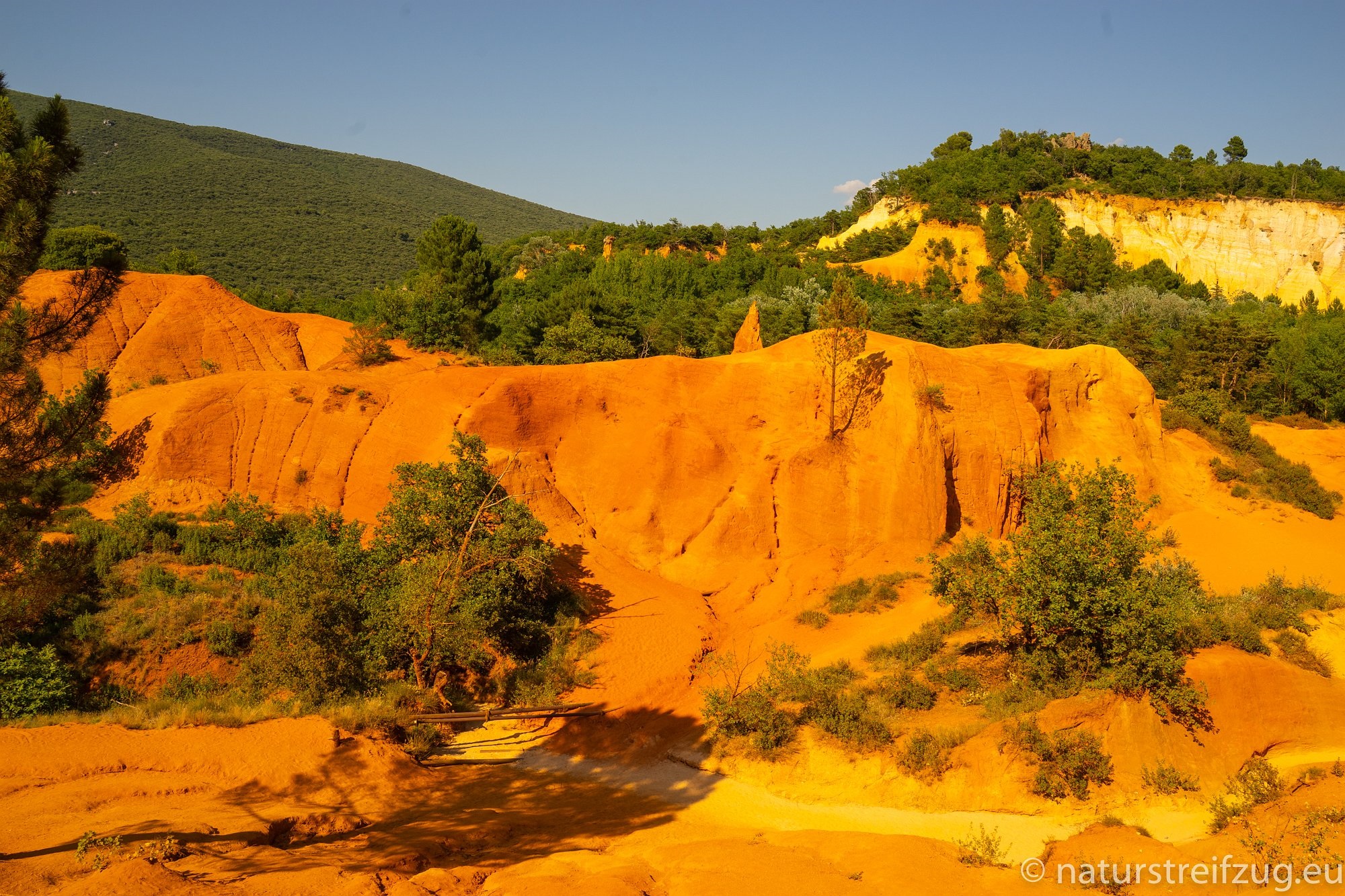 Neben den bekannten Ockersteinbrüchen von Roussillon gibt es noch einen anderen sehenswerten Steinbruch: Le Colorado Provencal bei Rustrel. Schon zur Römerzeit wurde Ocker abgebaut.