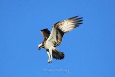 Zum ersten Mal waren wir im Juli 2015 an den Beobachtungständen bei der Boeker Mühle und hatten das Glück, am frühen Abend einen Fischadler beobachten zu können. Im August 2018 schauten wir ein zweites Mal vorbei und mussten leider feststellen, dass sich die Lage vor Ort verschlechtert hatte. Unter dem Stand führt nun ein häufig frequentierter Weg vorbei, was für einen Beobachtungsstand ausgesprochen kontraproduktiv ist und für uns eine unverständliche Entscheidung. Kein Wunder dass der Fischadler diesen nun sehr unruhigen Ort offenbar meidet, denn wir bekamen ihn nicht mehr zu Gesicht.
