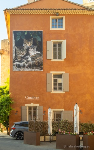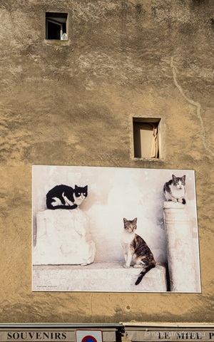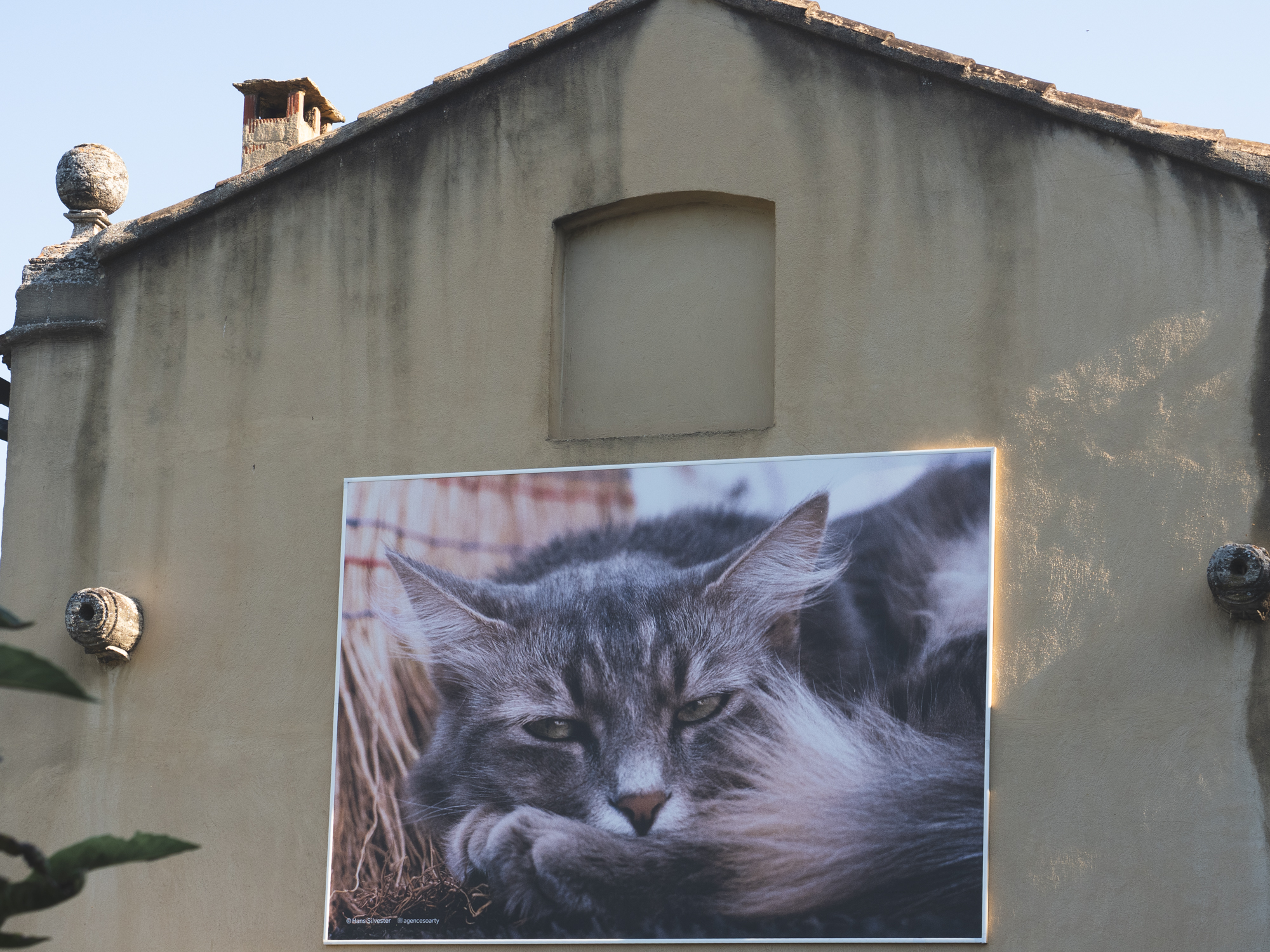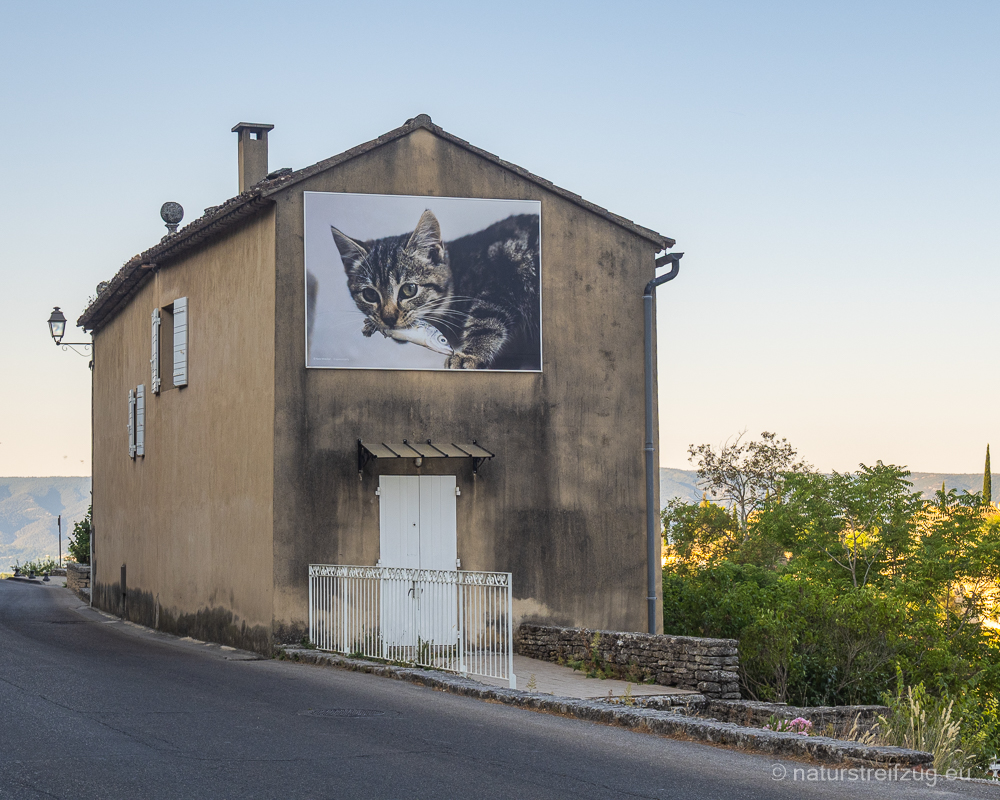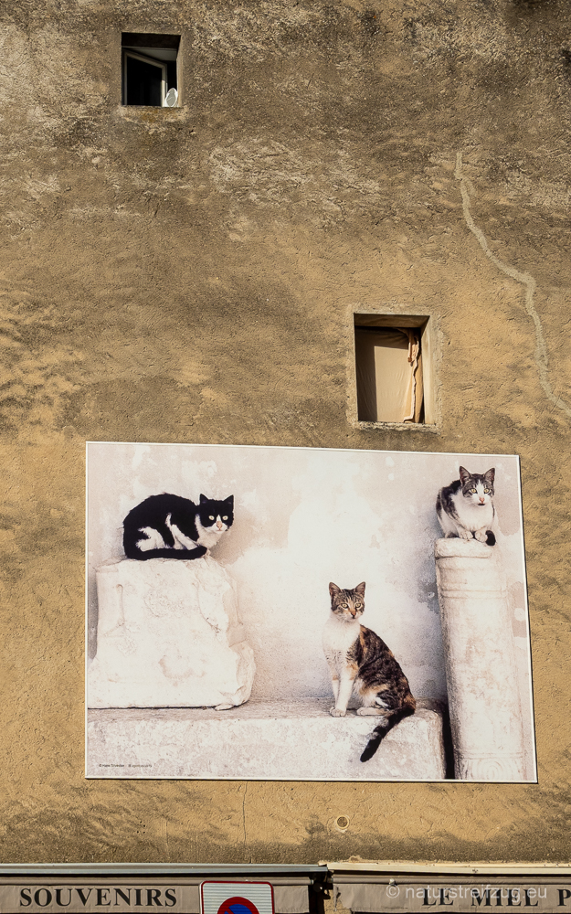 Schon beim Aufgang vom Parkplatz in die Stadt fiel uns das erste große Katzenbild an einem Haus auf. Weitere folgten.