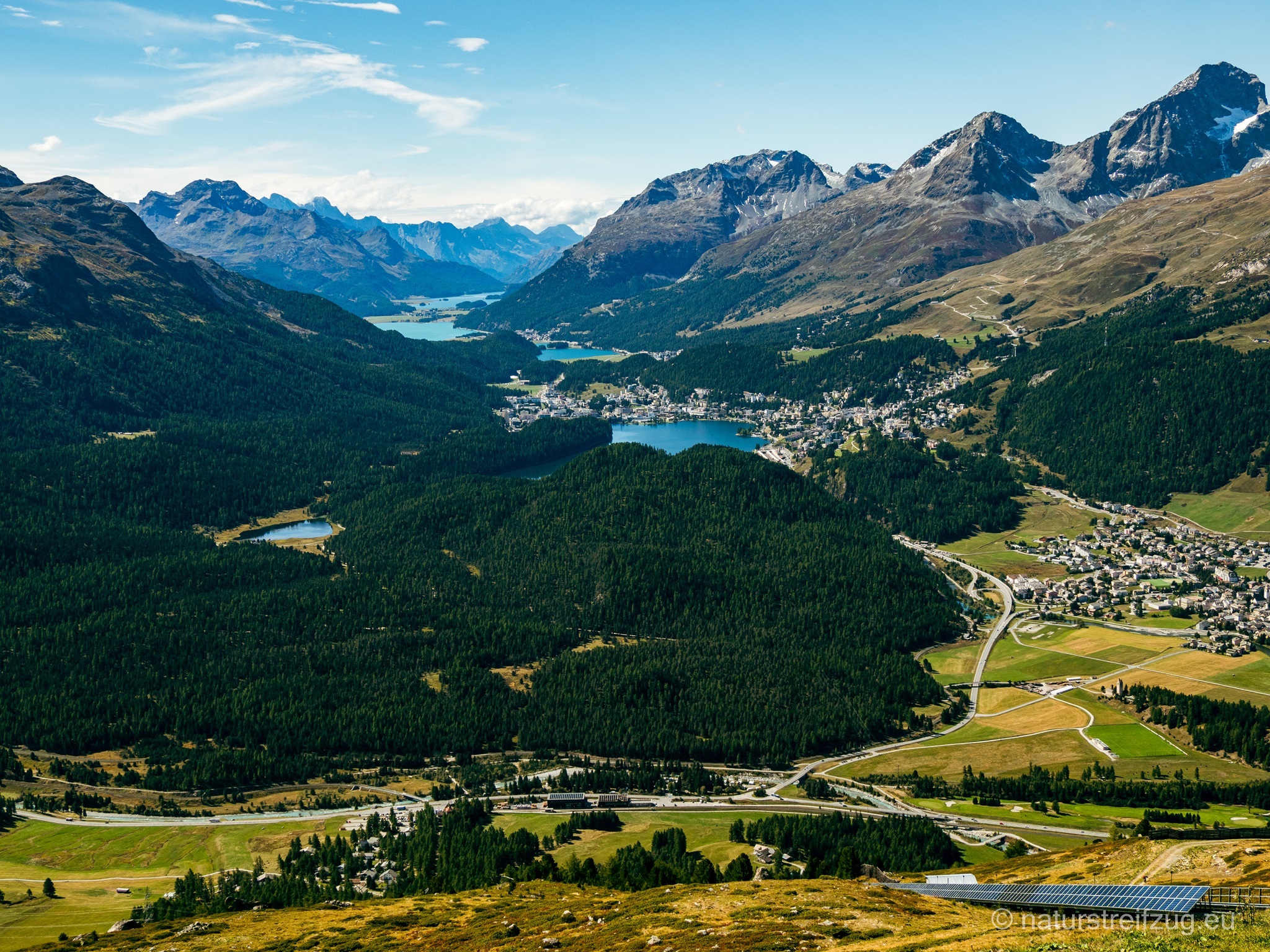 Zum Oberengadin zählen unter anderem Sils mit Silser See, Silvaplana mit Silvaplaner See, St. Moritz mit St. Moritzer See, Maloja, Pontresina.