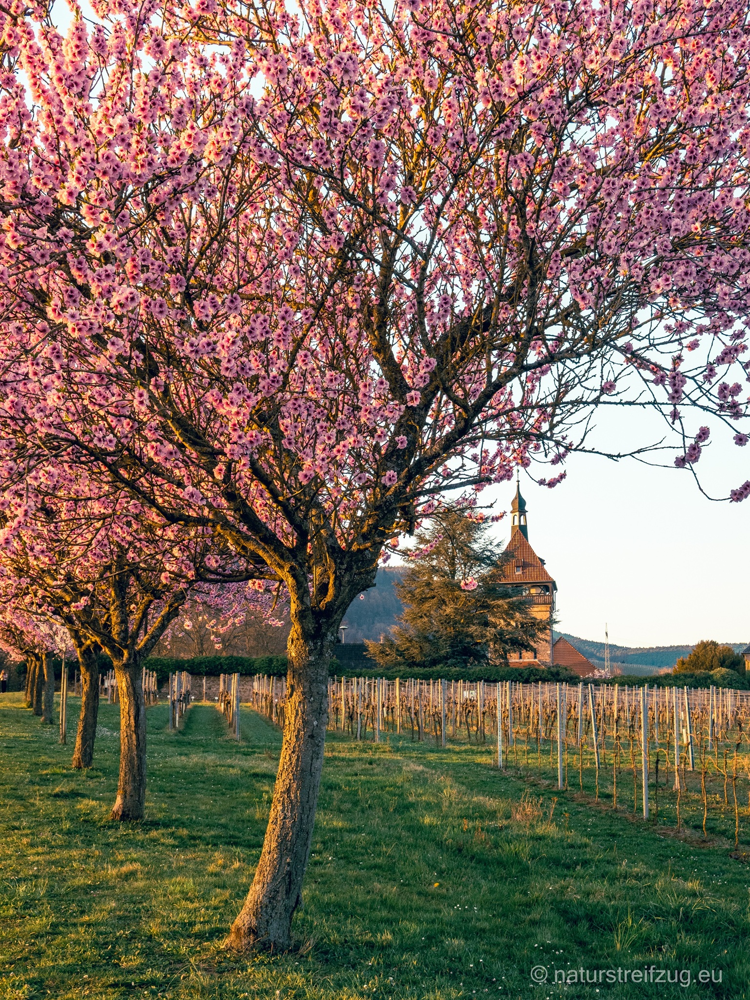 Schon lange stand ein Besuch der Pfälzer Mandelblüte auf unserer Liste. Im März 2025 nahmen wir uns endlich die Zeit dafür, nachdem uns der Newsletter der Seite www.mandelbluete-pfalz.de mitgeteilt hatte, dass die Mandelbäume in voller Blüte stünden. Da rund um Gimmeldingen mit seinem bekannten Mandelblütenfest an zwei Wochenenden immer viel los ist, zogen wir einen etwas ruhigeren Aufenthalt im Süden vor. In St. Martin, einem kleinen Weinort, machten wir Station. In der Umgebung konnten wir ungestörter fotografieren.