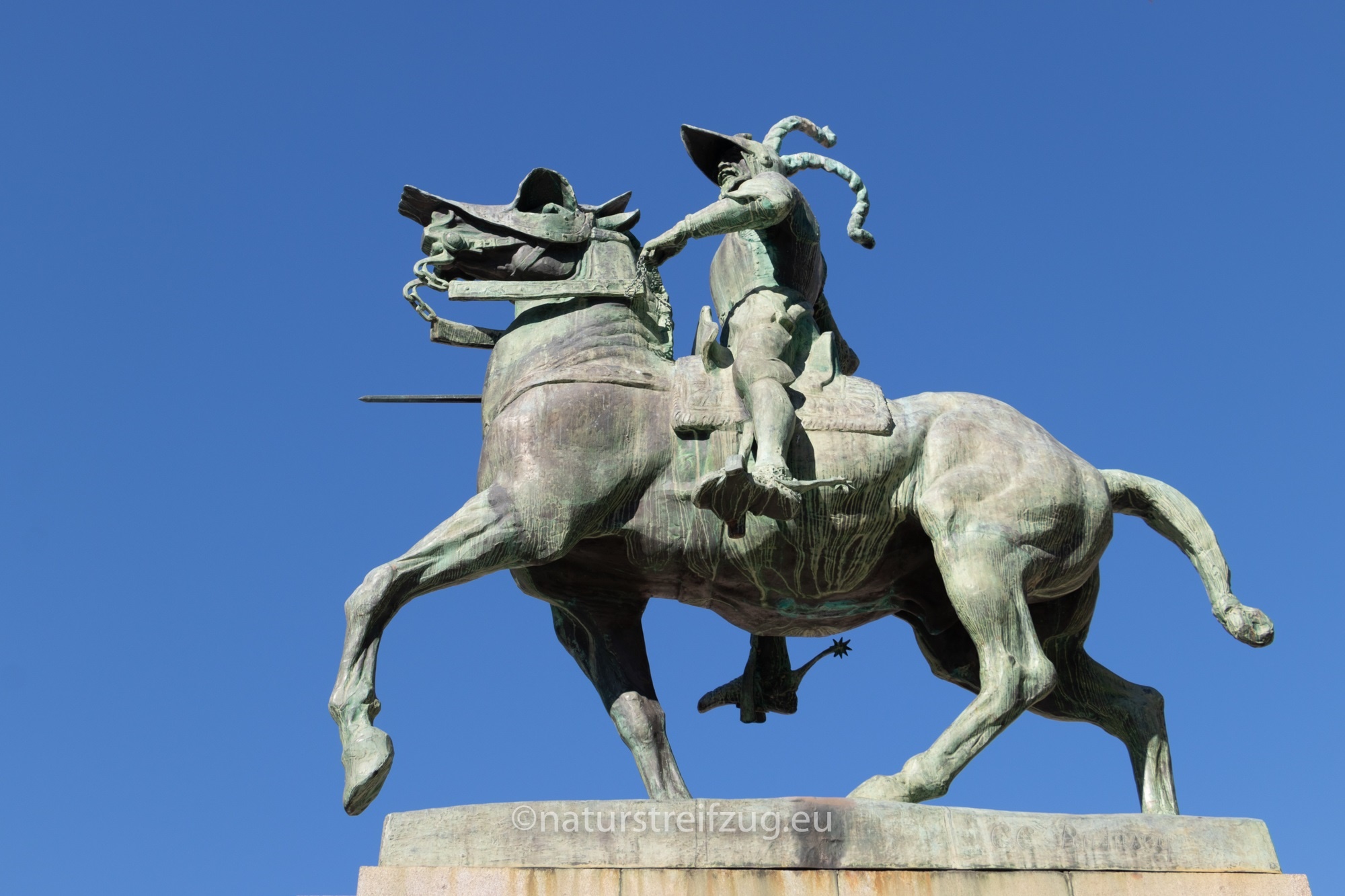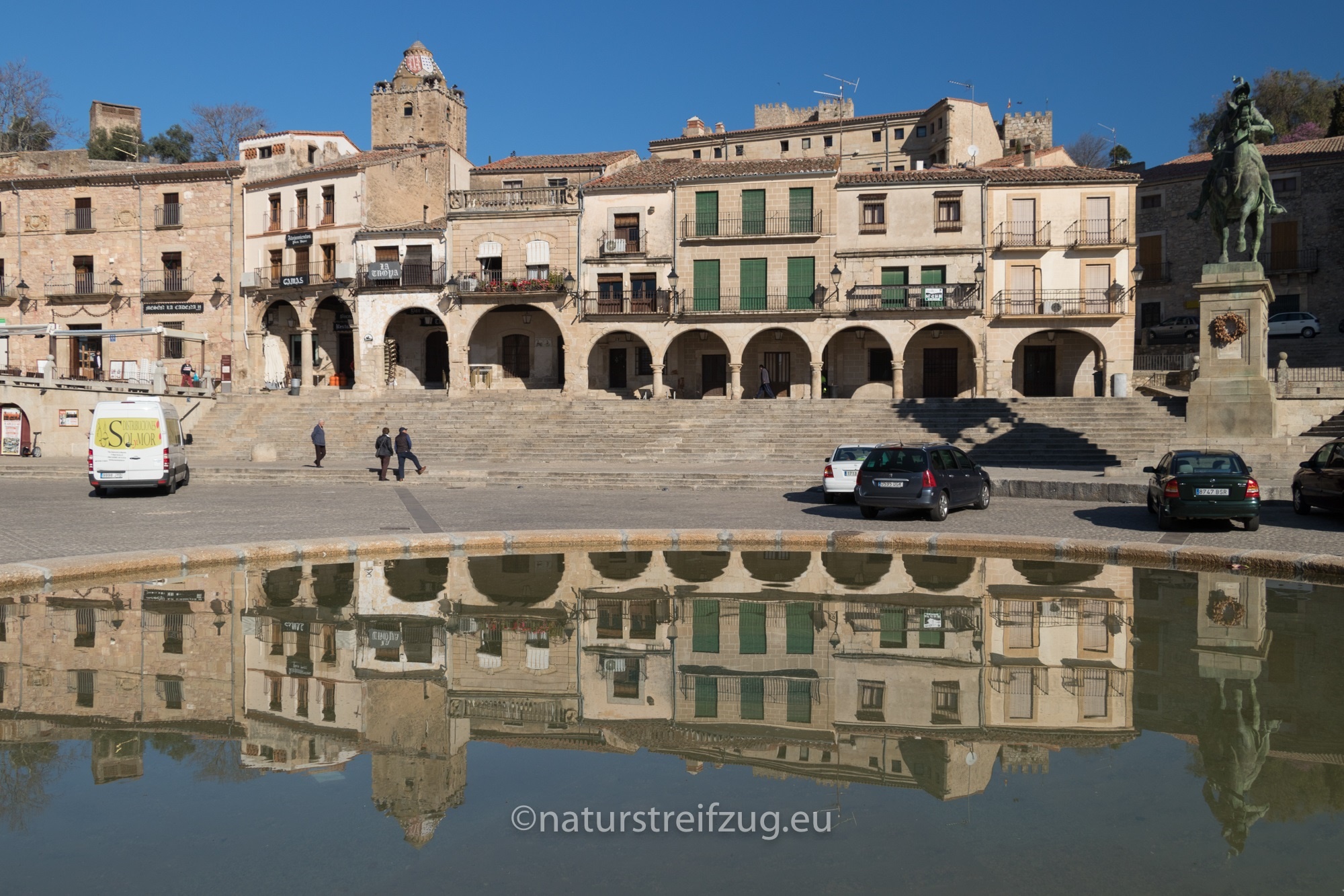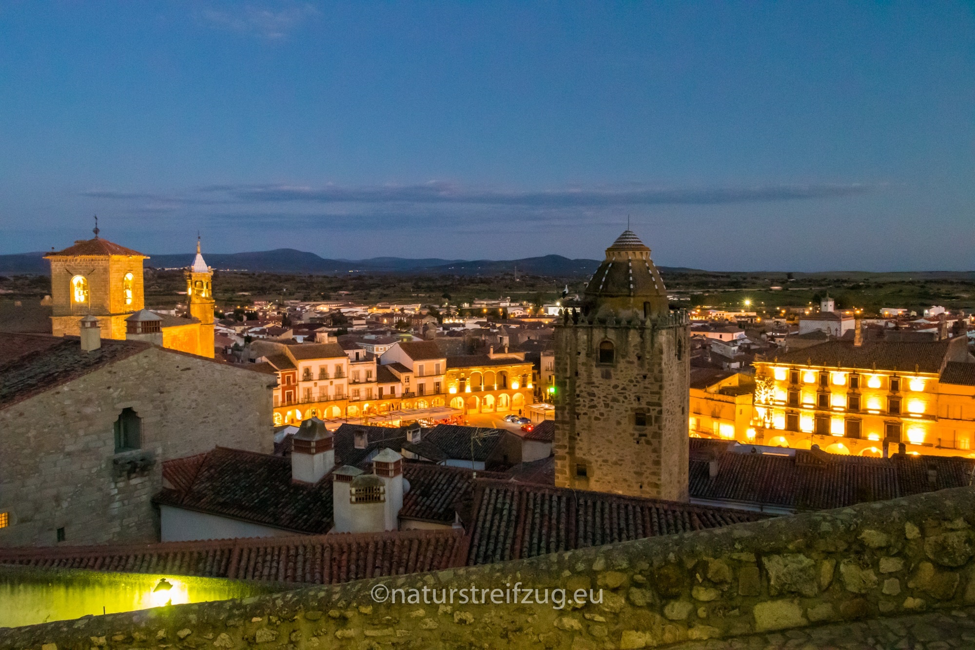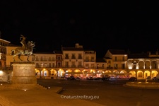 Von Cáceres nach Trujillo ist es nicht weit. Ein Besuch in der historischen Altstadt lohnt sich, vor allen Dingen in den Morgen- oder Abendstunden, wenn das Licht gut ist. Die kleine Stadt wird als "Wiege der Conquistadoren" bezeichnet. Im 16. Jahrhundert brachen von hier aus Eroberer der "neuen Welt" auf. Deshalb gibt es in Peru einen Ort gleichen Namens. Das Reiterstandbild auf dem Plaza Mayor zeigt Francisco Pizarro, der mit seinen drei Halbbrüdern und einem Mitstreiter das Reich der Inka eroberte.