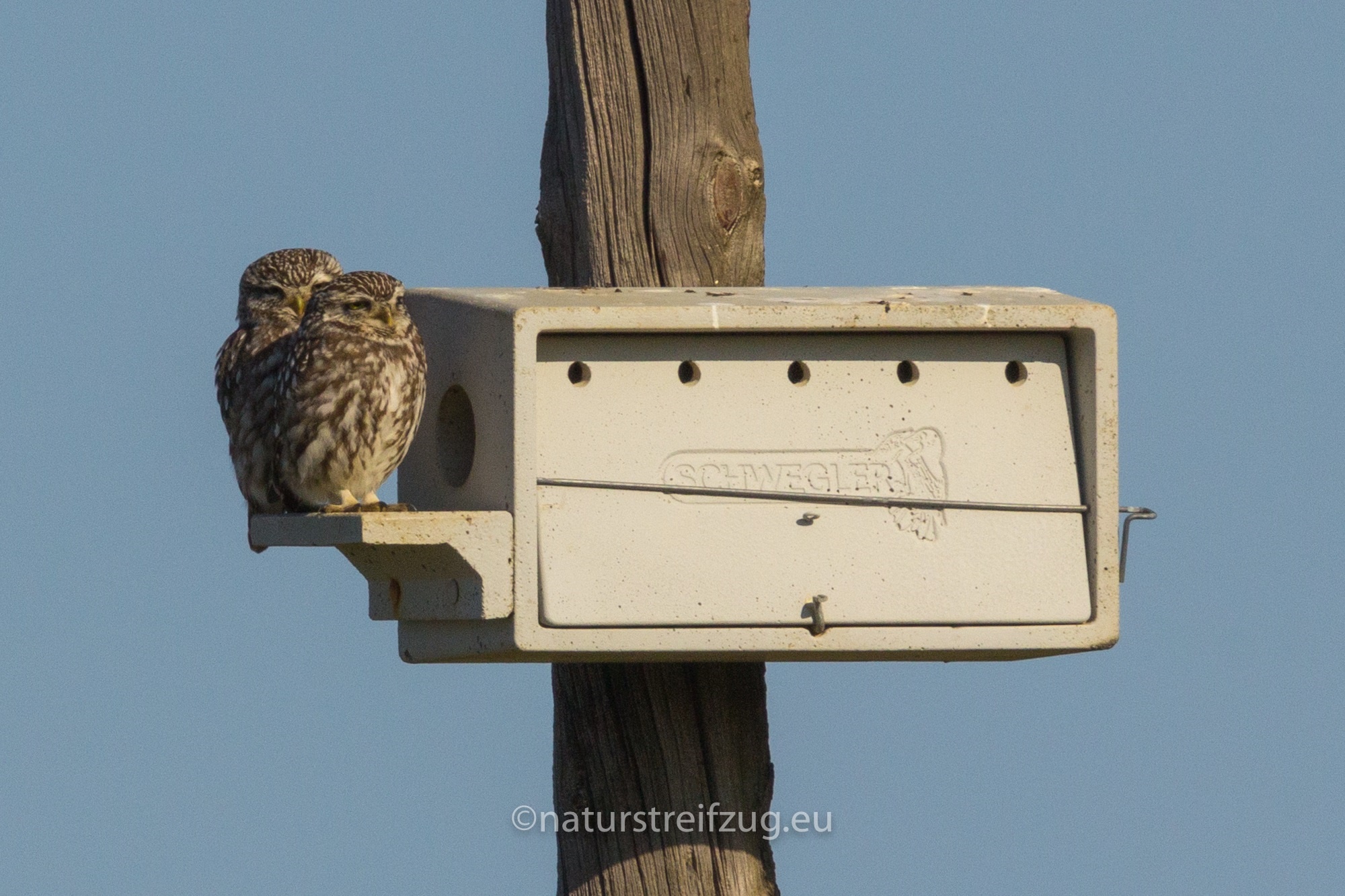 Auch hier waren wir in der Umgebung einen Tag lang mit einem Naturführer unterwegs. Ohne ihn hätten wir nicht die Steinkäuze, die Rötelfalken oder auch die auf den eingezäunten Farmen sehr weit entfernten Großtrappen entdeckt. Es wird sehr viel getan, um Nistmöglichkeiten für die Vogelwelt zu schaffen.