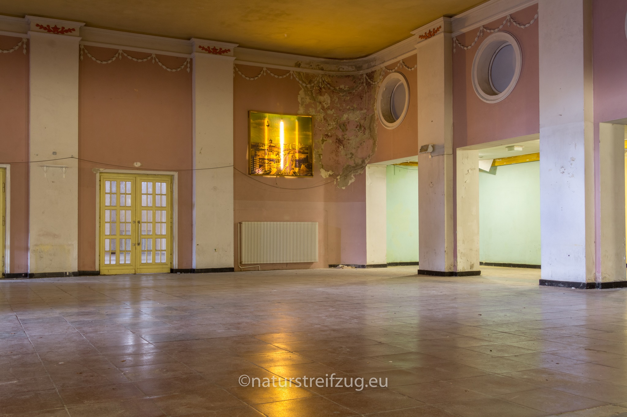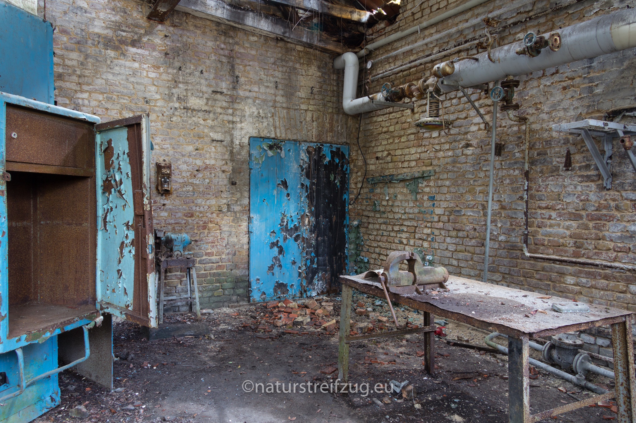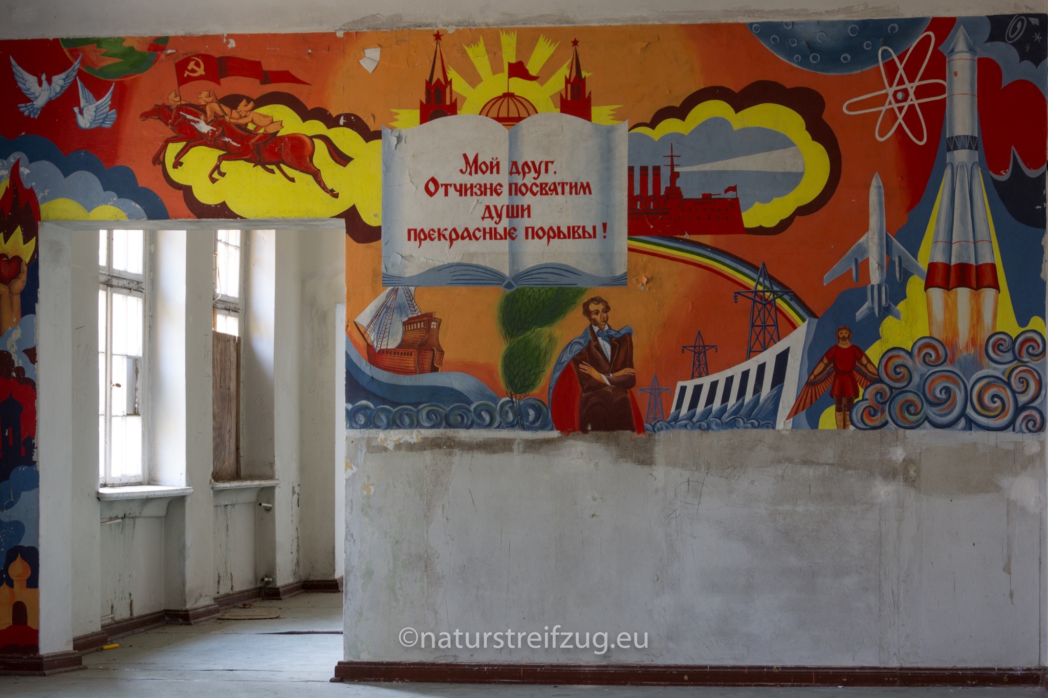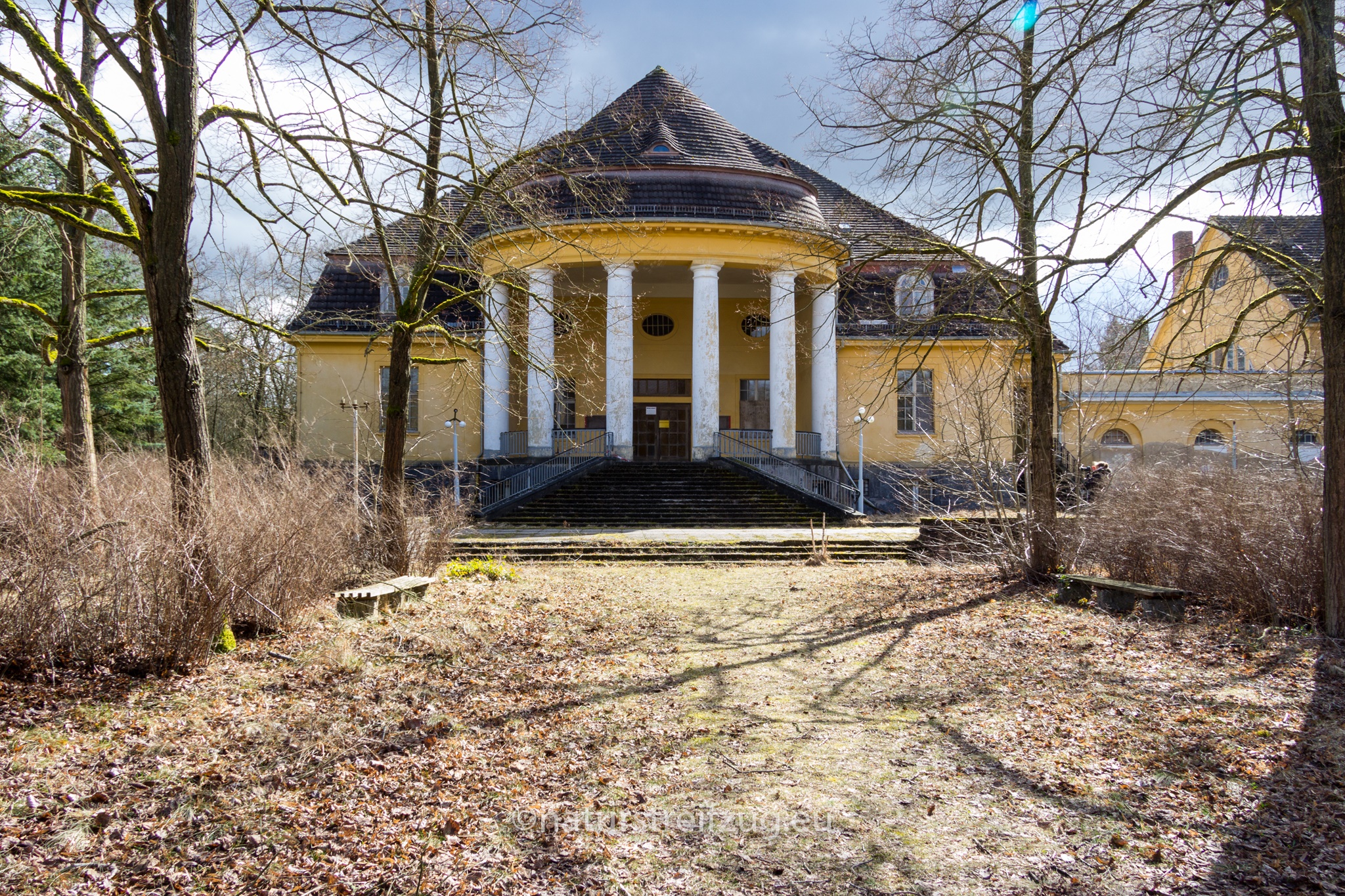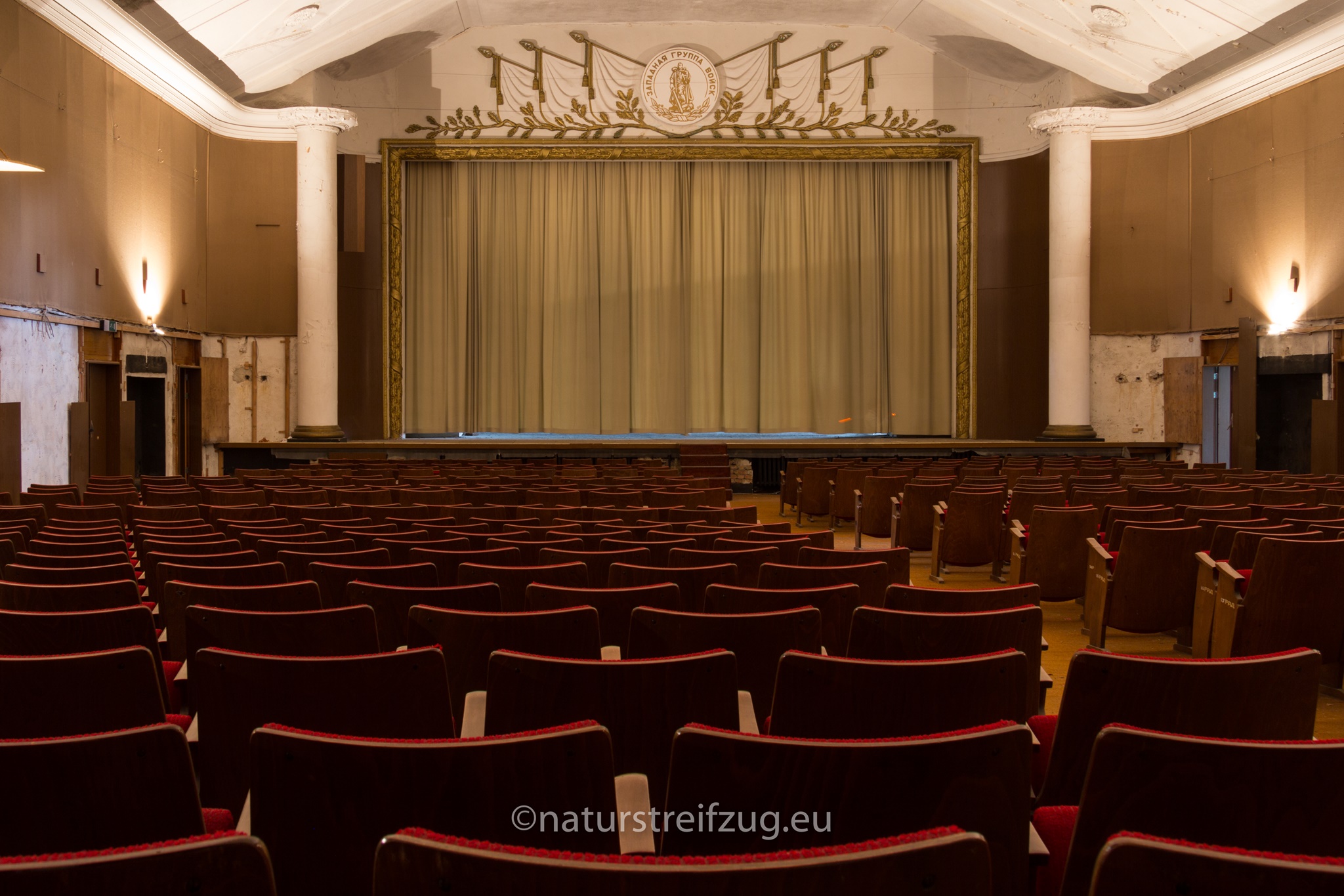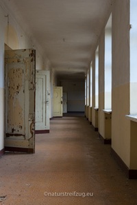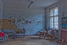 Wünsdorf bei Zossen (Brandenburg) hat ebenfalls wie die Heilanstalten eine lange Geschichte. Schon in der Kaiserzeit befanden sich dort Truppenübungsplätze, Kasernen und eine kaiserliche Turnanstalt. Später nutzten die Nazis das Gelände und etablierten u.a. die Heeressportschule. Nach dem zweiten Weltkrieg wurde es vom sowjetischen Militär übernommen. Bis zu 60 000 Soldaten lebten mit Angehörigen strikt abgeschottet von der sie umgebenden Bevölkerung, der der Zutritt strengstens verwehrt war - deshalb auch der Name "Verbotene Stadt". Inventar sucht man bis auf ein paar wenige Ausnahmen auch hier vergebens - die Russen hatten bei der Auflösung des Standortes alles mitgenommen.